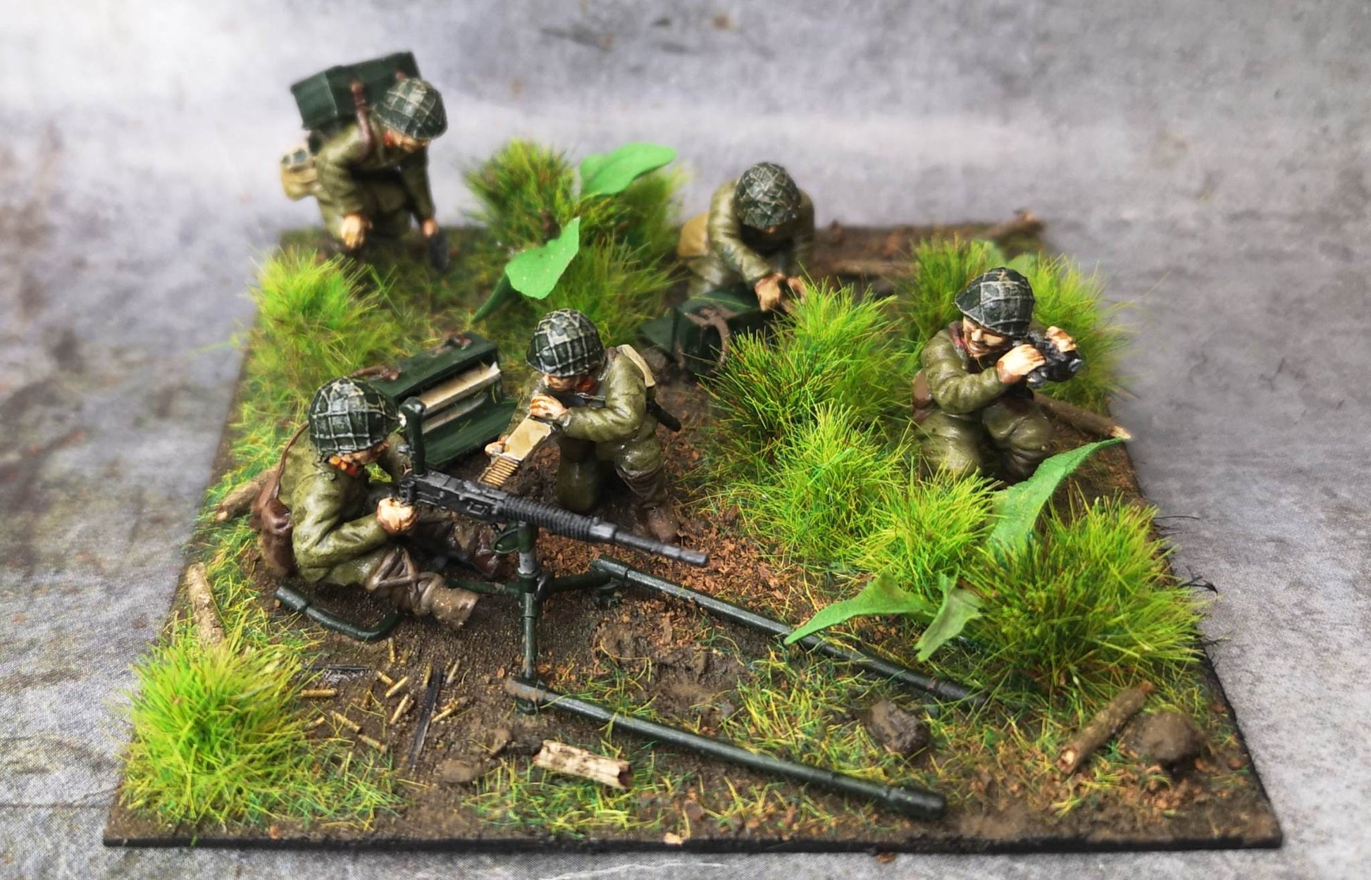 5 models, MG. NCO Pistol; Gunner 1-2 Pistol (Operating the Gun); 3-4 Ammo Bearers; M98 Uniform & Type 92 Helmet. 28mm Scale. This product is a Digital product. No physical product is included.