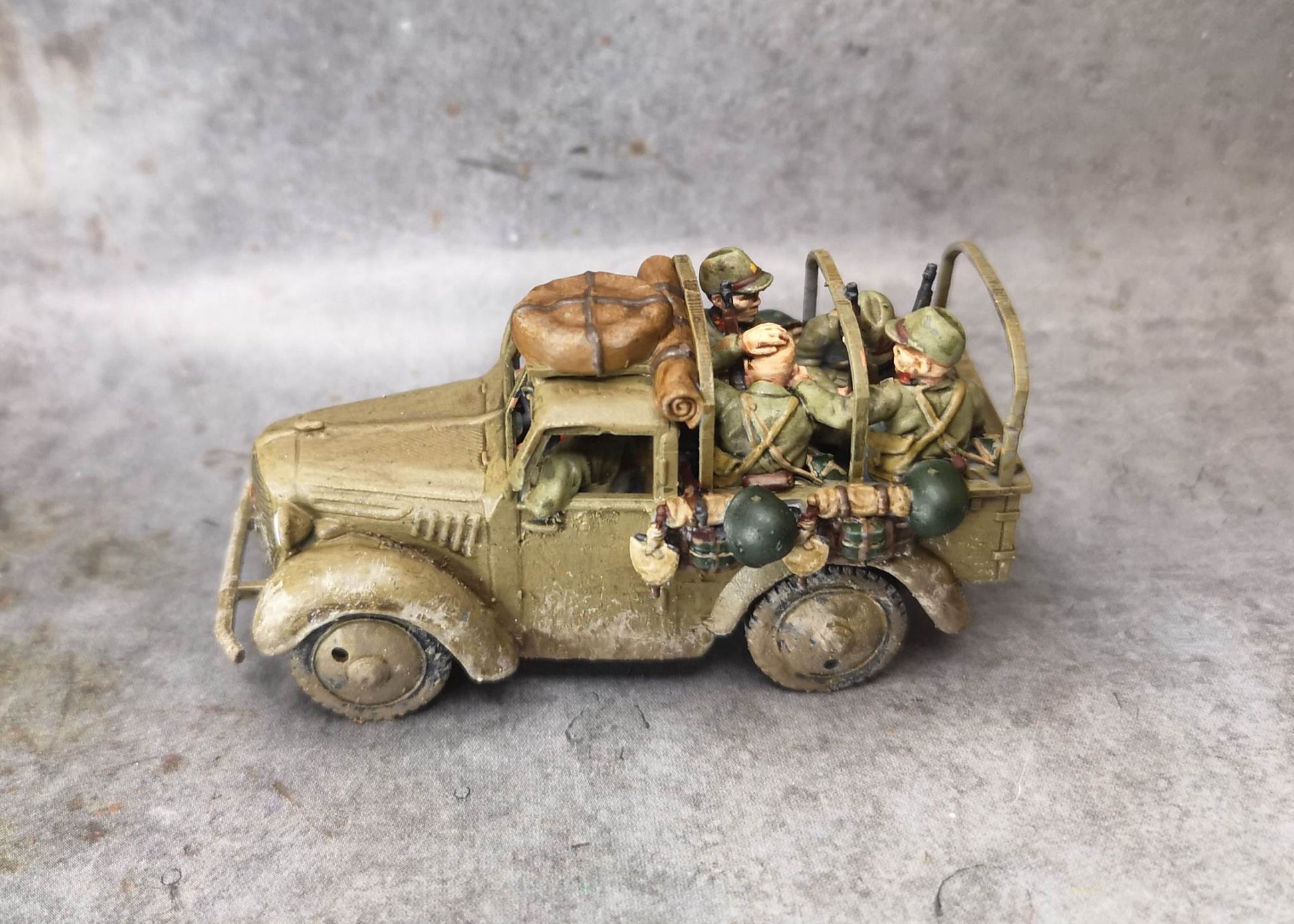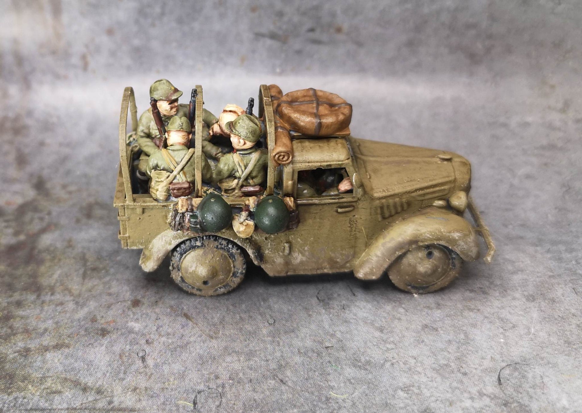 1 Kurogane Pick Up with driver & passenger. 28mm Scale. This product is a Digital product. No physical product is included. Painted examples include passengers from our seated infantry digital packs.